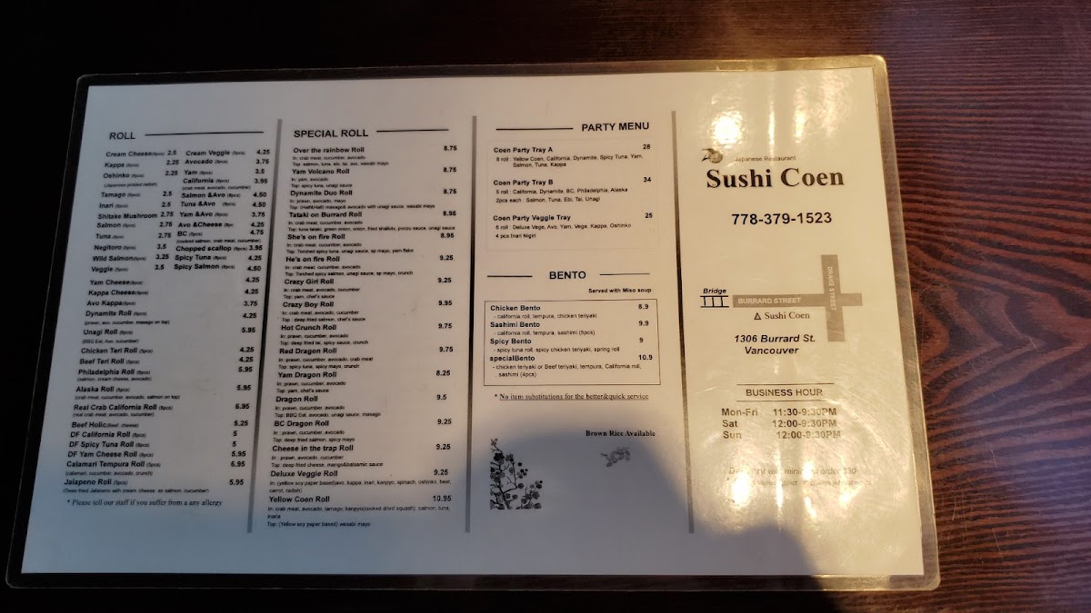 Welcome to Sushi Coen, a hidden gem nestled in the heart of Vancouver. This cozy eatery at 1306 Burrard St offers an enticing menu that caters to sushi lovers and casual diners alike. Whether you're a fan of classic sushi rolls or adventurous bowls, there’s something for everyone!